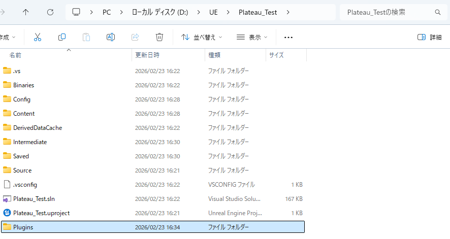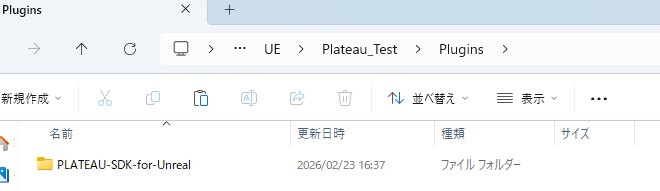 作成した「Plugins」フォルダ内にPLATEAU-SDK-for-Unrealを配置します。
