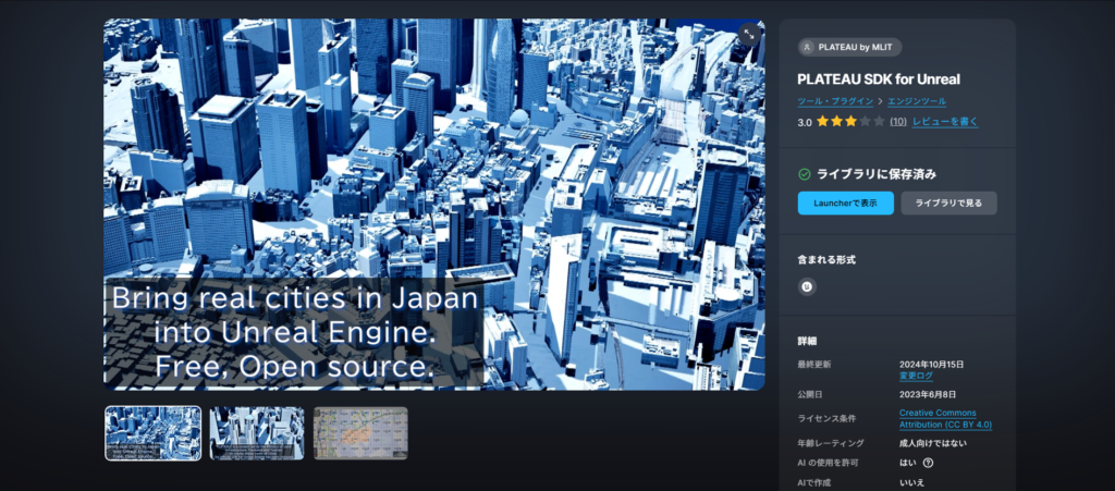PLATEAU SDK for Unreal自体の作業はここまで。