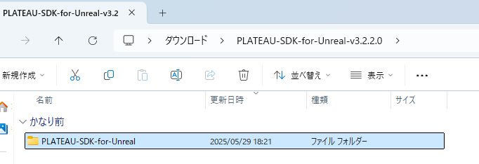 解凍したPLATEAU-SDK-for-Unrealフォルダ内の「PLATEAU-SDK-for-Unreal」を作成した「Plugins」フォルダ内にコピーします。